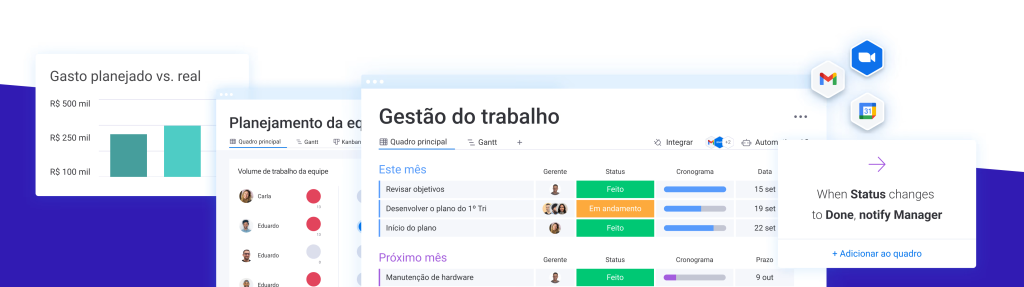 Se um cliente não responde um orçamento em 48 horas, o Monday envia um lembrete automático e sobe a prioridade do card para o vendedor. Isso garante que nenhuma oportunidade “caia entre as frestas”.